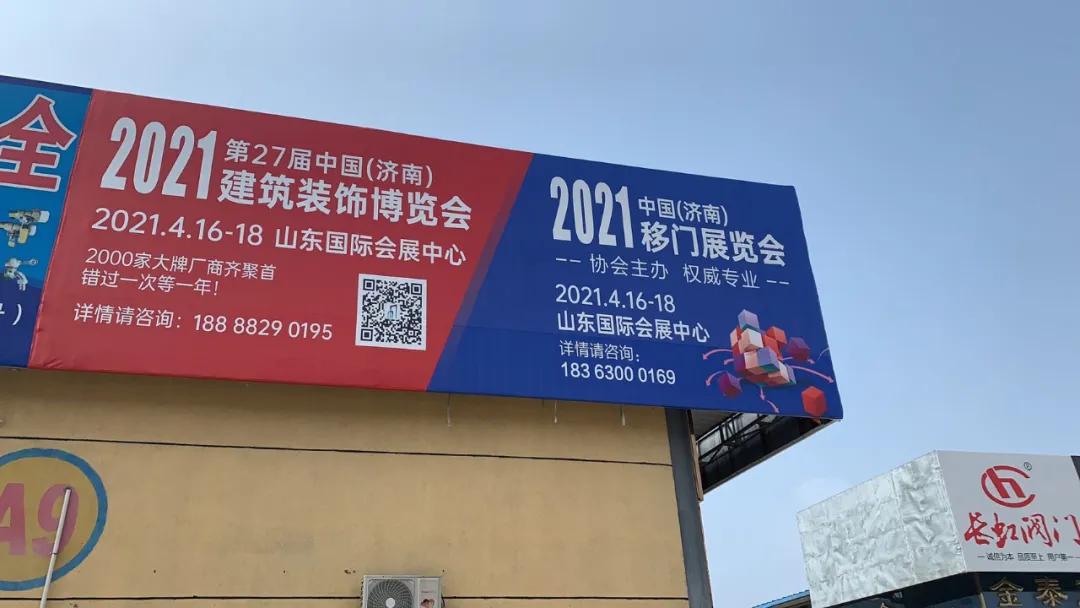 2021年第27屆中國(濟(jì)南)建筑裝飾博覽會(huì)將于2021年4月16-18日在山東國際會(huì)展中心盛大召開!為了全面提高展會(huì)的宣傳力度,保證展會(huì)質(zhì)量及展商效果,組委會(huì)聯(lián)系線下建材市場(chǎng),發(fā)布展會(huì)日期,力爭(zhēng)將展會(huì)開幕信息傳達(dá)給更多的業(yè)內(nèi)人士。目前山東多地市建材市場(chǎng)已豎立展會(huì)廣告牌信息,您看到了嗎?